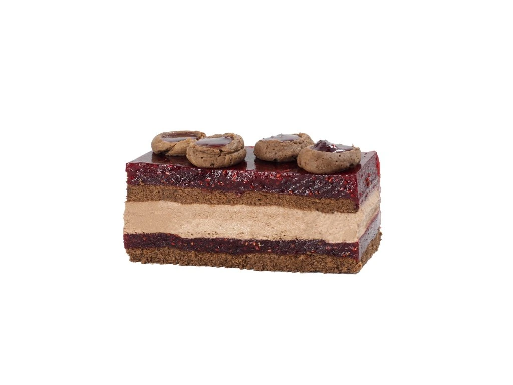 Maliny, cukr, smetana, čokoláda hořká 60%, kakao, mouka pšeničná, voda, vejce, řepkový olej, želatina, agar, pectin